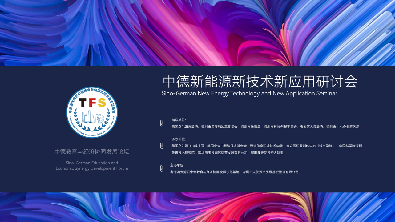 7月27日,中德教育与经济协同发展论坛首次活动暨“中德新能源新技术新应用研讨会”,在中国深圳宝安区中德(欧)产业示范园国际创新中心成功召开,全程采用中英文同声传译。本次活动由粤港澳大湾区中德教育与经济协同发展示范基地(简称“湾区中德基地”)和深圳市天使投资引导基金管理有限公司主办。德国乌尔姆TFU科技园、德国史太白经济促进基金会、深圳信息职业技术学院、宝安区职业训练中心(城市学院)等单位具体承办。